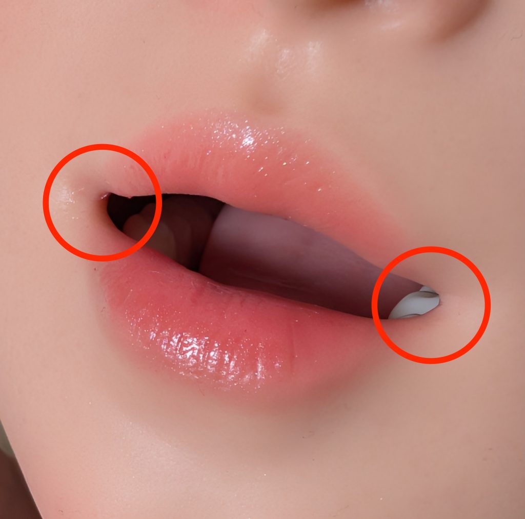 挿入時の顔変形はなし。柔らかさ、気持ちよさは標準レベルかなと思います。ROS口開閉ですがMAXの開きがやや甘いかなという印象です。また、口角のラウンドの丸みが弱く尚且つ処理もやや大雑把な印象で比較的裂けやすいタイプに思えます。(ひょっとしたら口角の裂けを予防するために口が開きすぎないよう抑えた作りなのかもしれません)